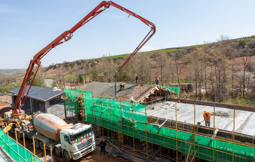 五一期間主要進(jìn)行A區(qū)消防車道路基基礎(chǔ)及人行步道混凝土澆筑壓花;B區(qū)1#酒店渭水山莊主體施工、戶外單體墻體砌筑及屋面施工;C區(qū)消防車道路基基礎(chǔ)及停車場基礎(chǔ)施工等。